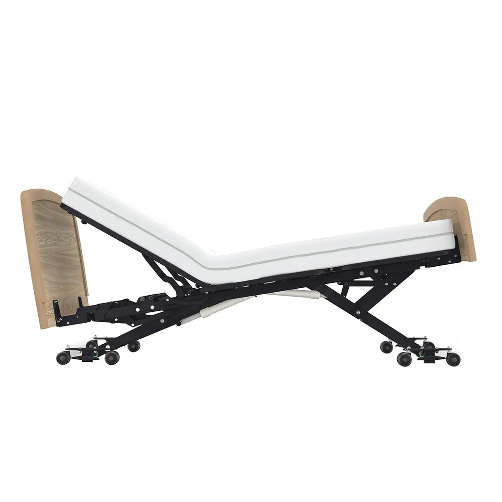 Safe, ultra-low sleeping height without sacrificing comfort, dignity, or design - The Accora Empresa Floor Bed is purpose-built to reduce fall risk while preserving independence and comfort. Designed for users at high risk of rolling out of bed, such as seniors with dementia, Parkinson’s, mobility limitations, or post-acute rehabilitation needs, the Empresa lowers to a true floor-level height and rises electrically for caregiving, transfers, and daily activities.